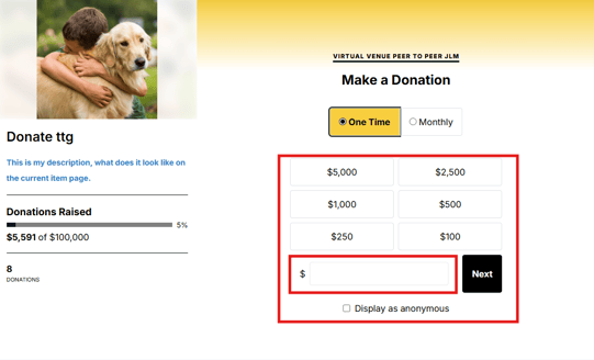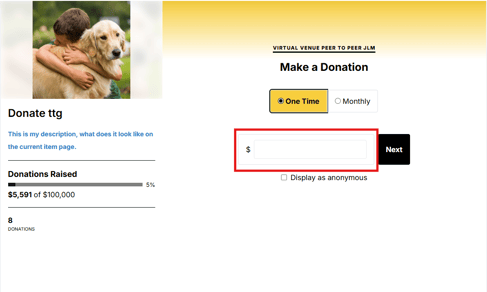 - Can add as many denominations as you wish. There will also be a 'other' field for the donor to add their own amount. If you do not add any denominations the other field will display as default.